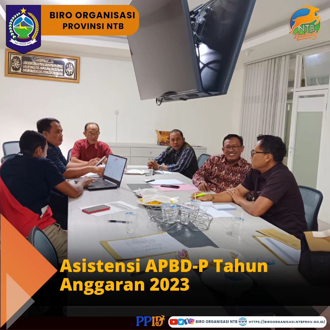 Mewakili Kepala Biro Organisasi Setda Provinsi NTB, Dr. Nursalim, S.Sos.,MM., Kepala Bagian Tatalaksa, Ahlul Wakti, ST,.MT., dan Kasubbag TU, Nedi Goli, SH., menghadiri Asistensi Anggaran Pendapat dan Belanja Daerah Perubahan (APBD-P) tahun Anggaran 2023 di Ruang Rapat BPKAD Provinsi NTB. 10/09/2023.