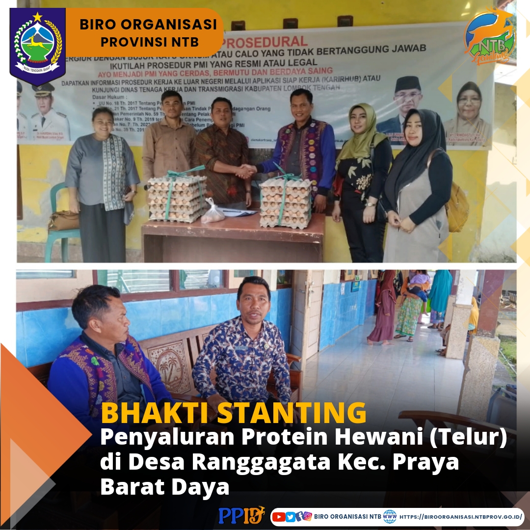 Lombok Tengah, 25/07/2023 - Mewakili Kepala Biro Organisasi Setda Provinsi NTB, Dr. Nursalim, S.Sos. MM. Kepala Bagian Tatalaksa, Ahlul Wakti, ST., MUM., melakukan Penyaluran Protein Hewani (Telur) di Desa Ranggagata Kecamatan Praya Barat Daya Kabupaten Lombok Tengah.