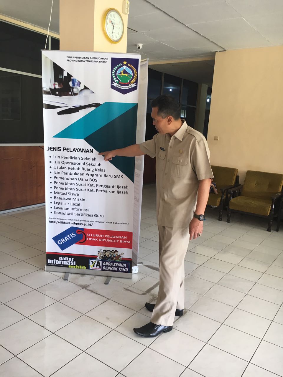 Untuk saling mengingatkan sekaligus melihat dari dekat progress OPD lingkup Pemprov NTB untuk memenuhi standard-standard pelayanan publik pasca direktif Gubernur NTB dalam rapat pimpinan bulan yang lalu, kepala Biro Organisasi Setda Prov NtB beserta Kabag tata laksana dan reformasi birokrasi dan staf melakukan silaturrahmi ke beberapa OPD yang menurut penilaian Ombushment tahun 2015 masih perlu terus meningkatkan prasyarat-prasyarat layanan publiknya. Sebagai informasi bahwa hasil penilaian kepatuhan standard pelayanan publik Pemprov meraih angka 73,96, kita masih berada pada zona kuning dari 53 produk layanan dengan predikat kepatuhan sedang. Dalam rapat pimpinan bulan yang lalu, Gubernur NtB TGH M Zainul Majdi mencermati satu persatu tingkat kepatuhan pelayanan yg diberikan setiap OPD dan Beliau meminta bagi OPD yg sdh memiliki nilai baik agar dipertahankan bahkan terus ditingkatkan hingga kualitas pelayanan dapat memuaskan masyarakat. secara khusus beliau meminta kepada 4 OPD yakni dinas kesehatan, dinas perpustakaan dan kearsipan, dinas sosial dan dinas pendidikan dan kebudayaan agar memperbaiki segera standard pelayanan di empat kerja masing2, mengingat ke empat OPD ini bernilai masih dibawah rata2 73,96.