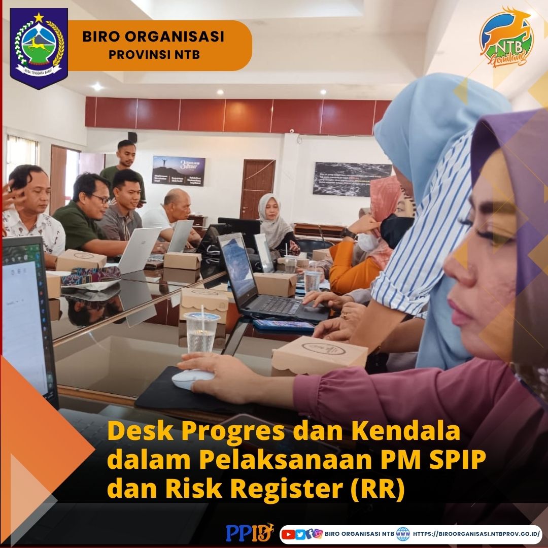 Jumat, 14/07/2023 - Mewakili Kepala Biro Organisasi Setda Provinsi NTB, Dr. Nursalim, S.Sos. MM. KASUBAG Tata Usaha, Nedi Goli, SH. dan Penyusun Laporan Keuangan, Juni Yastuti, SP. mengikuti Pendampingan  Desk Progress dan Kendala dalam Pelaksanaan PM SPIP dan Risk Register (RR) di Ruang Rapat Ratu Langko Inspektorat Provinsi NTB.