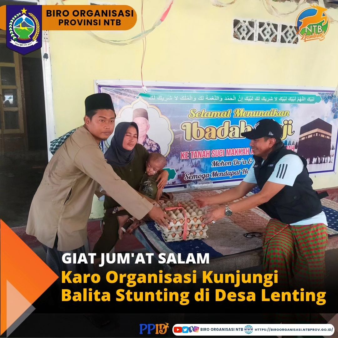 Lombok Timur, 10/11/2023 - Dalam kegiatan JUM'AT SALAM, Rizki Alfatih anak Balita Stunting di Dusun Lenting Pengoros Desa Lenting di Kunjungi Kepala Biro Organisasi Setda Provinsi NTB, Dr. Nursalim., S.Sos., M.M,.