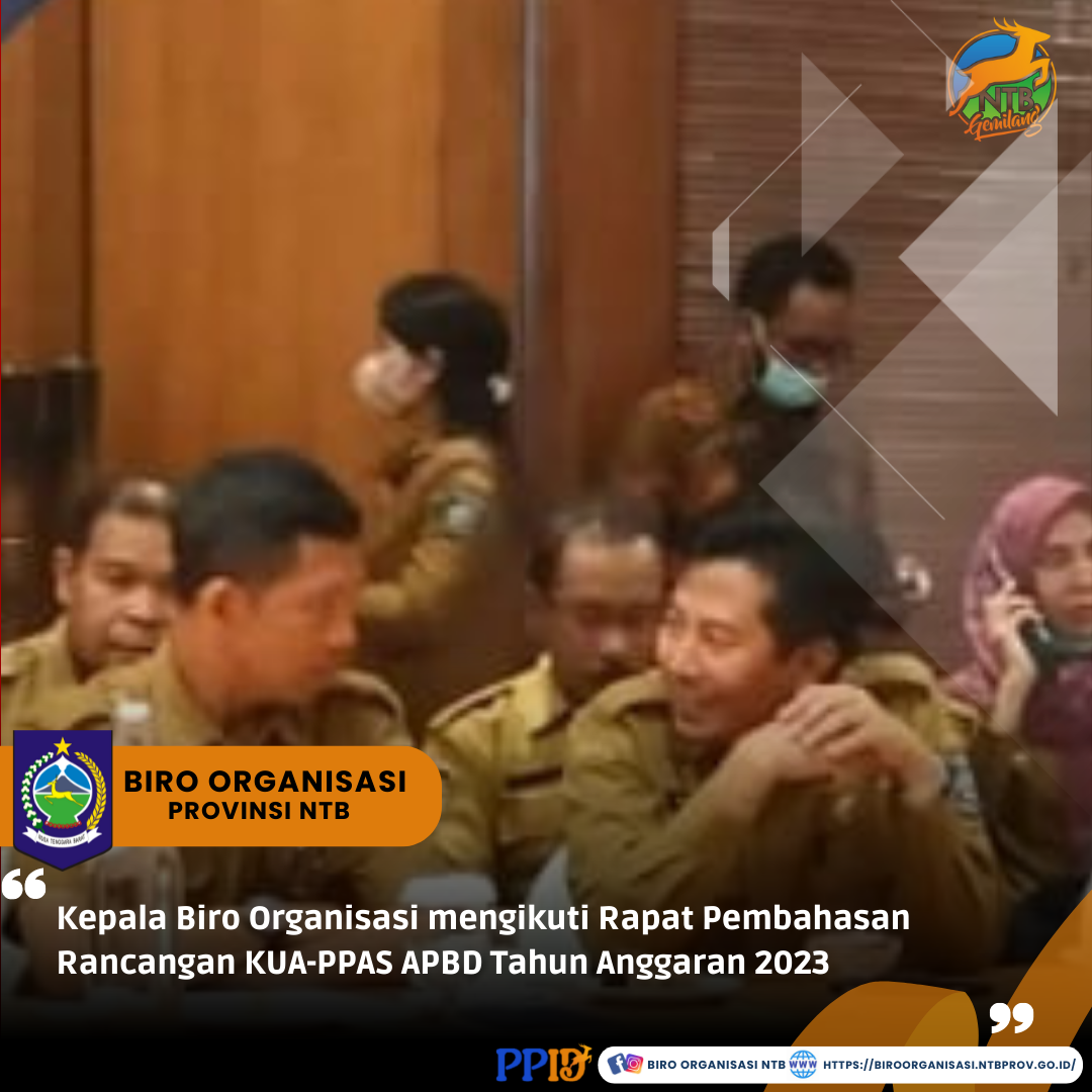 Kepala Biro Organisasi Dr.Nursalim, S.Sos.MM Mengikuti kegiatan Rapat Pembahasan Rancangan KUA-PPAS APBD Tahun Anggaran 2023 di Hotel Seraton Senggigi. Senin (14/11/2022)