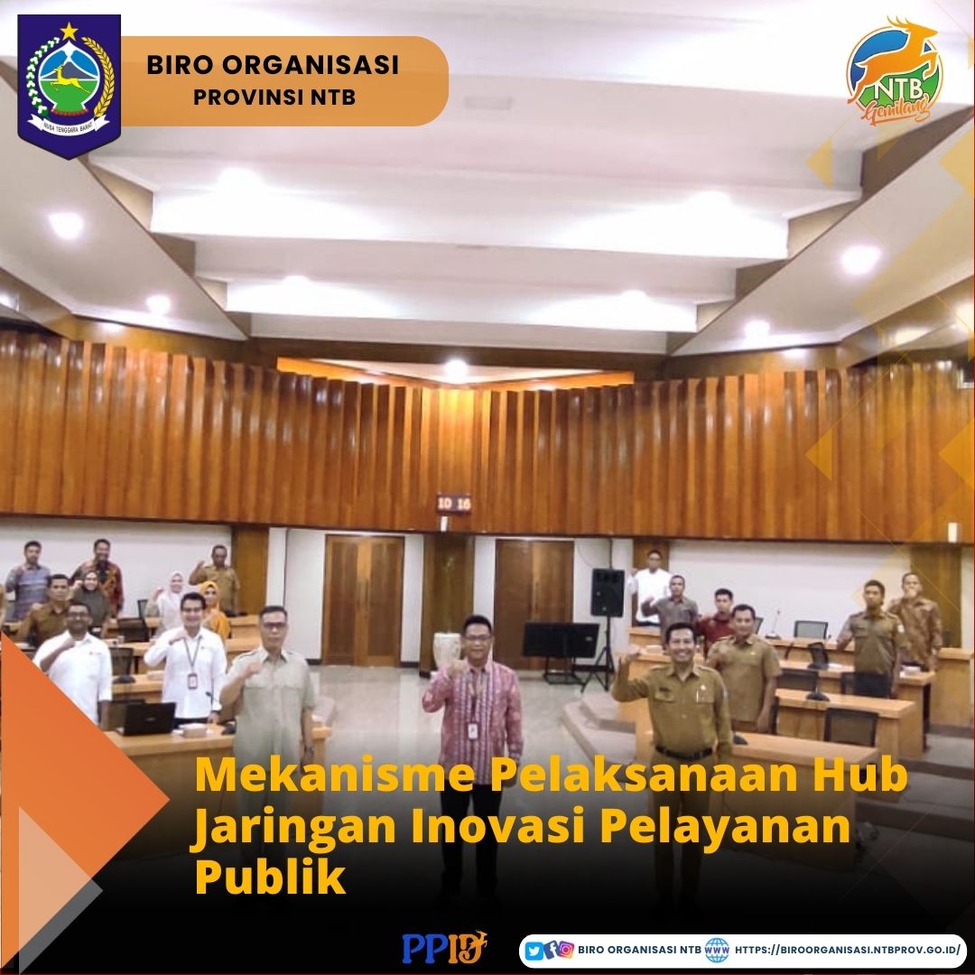 Kementerian PANRB bersama Biro Organisasi Setda Provinsi NTB melaksanakan koordinasi Mekanisme Pelaksanaan Hub JIPP di Gedung Sangkareang Kantor Gubernur NTB yang diikuti oleh pemerintah daerah lingkup Provinsi NTB.