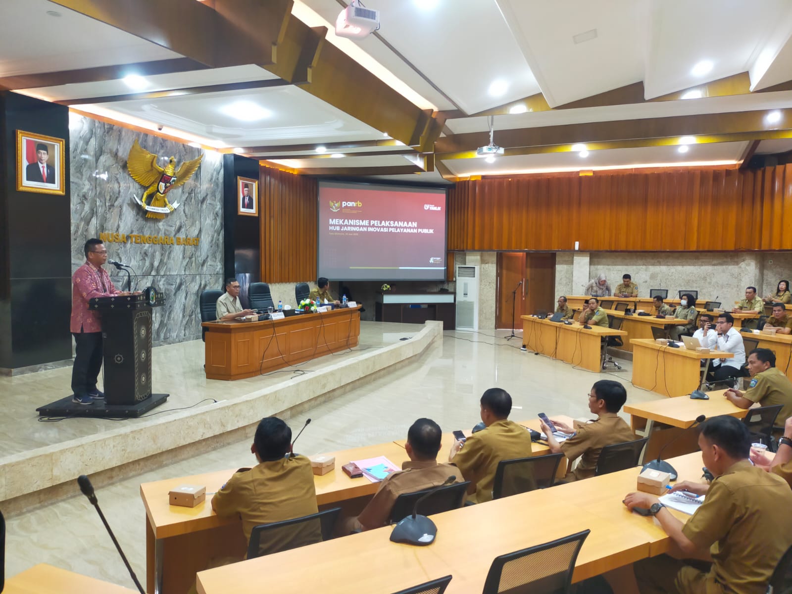 Mataram, 26/06/2023 - Biro Organisasi menghadirkan Asisten Deputi Pelayanan Publik KemenpanRB untuk melakukan pendampingan Mekanisme Pelaksanan Hub Jaringan Inovasi Pelayanan Publik (JIPP) khususnya untuk memastikan lolos nominasi PePadu Plus  masuk Top 99 sampai ke Top 45, yang berlangsung di Gedung Sangkareang Kantor Gubernur NTB.