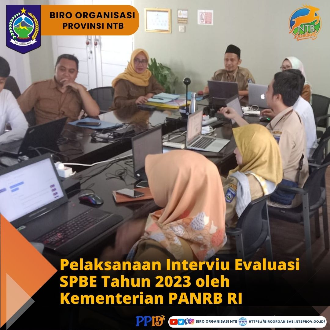 DISKOMINFOTIK Provinsi NTB sebagai perangkat daerah yang memiliki tugas dan fungsi terhadap pelaksanaan interviu tersebut mengundang 7 perangkat daerah Provinsi NTB yaitu Dinas Perdagangan, BPKAD, BAPPEDA, BAPPENDA, BKD, Biro PBJ dan Biro Organisasi Setda Provinsi NTB untuk bersama - sama mengisi hasil interviu dari Kementrian PANRB RI, sesuai tugas dan fungsinya.