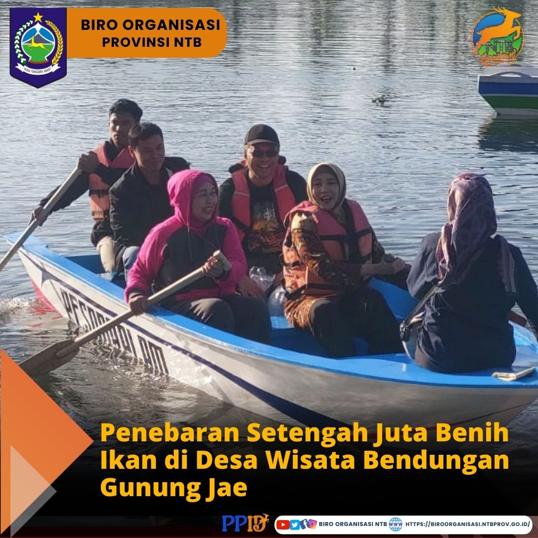 Sabtu, 12/08/2023 - Dalam rangka memperingati Hari Ulang Tahun (HUT) ke - 78 Republik Indonesia, Gubernur NTB, Dr. Zulkieflimansyah, SE.,M.Sc., dan Wakil Gubernur Wakil Gubernur NTB, Dr. Hj. Siti Rohmi Djalillah, M.Pd didampingi oleh para Kepala Perangkat Daerah Provinsi NTB,  Dirut Bank NTB Syariah, Kepala BI, Bulog, OJK,  dan turut membersamai kegiatan tersebut Kepala Biro Organisasi Setda Provinsi NTB, Dr. Nursalim, S.Sos.,MM., melakukan penebaran benih ikan sebanyak setengah juta di Desa Wisata Bendungan Gunung Jae Desa Sedau Kecamatan Narmada Kabupaten Lombok Barat.