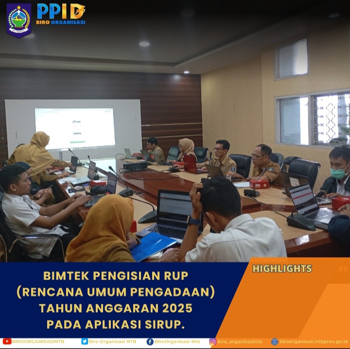 Selasa, 14/01/2025 - Kepala Biro Organisasi Dr. H. Nursalim.,S.Sos.MM., Setda Provinsi NTB menugaskan Harianto Penelaah Teknis Kebijakan mengikuti Rapat yang bertempat di RR Melati, dalam Bimbingan Teknis Pengisian RUP (Rencana umum Pengadaan) Tahun Anggaran 2025 pada Aplikasi SIRUP.