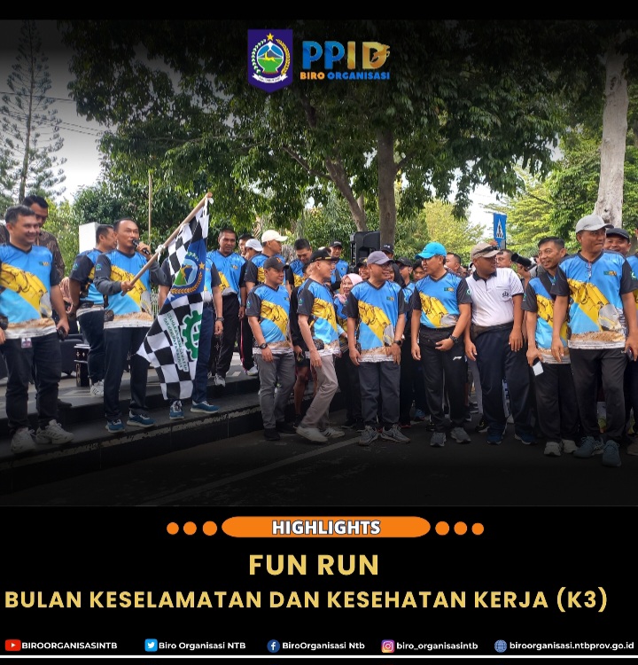 Jum'at, 17/01/2025 - Dalam Rangka memperingati bulan K3 (Keselamatan Kesehatan Kerja ) Nasional kepala Biro Organisasi Setda Provinsi NTB Dr. H. Nursalim,S.Sos.,MM. Beserta para staff Mengikuti acara FUN RUN yang diselenggarakan oleh Dinas Ketenagakerjaan Provinsi NTB adapun Tagline di usung dari penyelenggaraan event tersebut adalah "Melalui Penerapan Norma Keselamatan dan Kesehatan Kerja Kita Wujudkan NTB Makmur dan Mendunia".