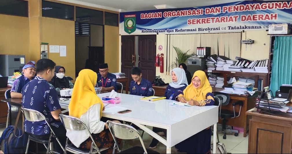 Kamis, 15 September 2022 bertempat di Ruang Bagian Organisasi Setda Kabupaten Sumbawa. Analis Kebijakan Ahli Muda & Analis Pelayanan Publik selaku Tim Evaluator PEKPPP Tahun 2022 Biro Organisasi Setda Provinsi NTB melakukan Evaluasi dengan metode Observasi Lapangan bersama dengan Unit Pelayanan Publik (UPP) yang dinilai. UPP terkait yaitu Dinas Kependudukan & Pencatatan Sipil Kab. Sumbawa dan Dinas Penanaman Modal - Pelayanan Terpadu Satu Pintu (DPM-PTSP) Kab. Sumbawa Dalam pelaksanaan kegiatan evaluasi, dipaparkan oleh tim evaluator hasil dari review pengisian F01 & F03 beserta bukti dukung yang telah di upload masing-masing UPP. Ada beberapa aspek penilaian yang masih harus dilengkapi & disempurnakan oleh UPP. Tim evaluator juga memberikan kesempatan pada UPP untuk melakukan perbaikan bukti dukung yng sesuai dengan F01 selamat 1 minggu pasca pelaksanaan evaluasi. Selanjutnya, tim evaluator bergerak melakukan peninjauan lapangan ke UPP terkait dan melakukan penyesuaian bukti dukung dengan kondisi di lapangan (UPP).  Kepala DISDUKCAPIL Kab. Sumbawa & DPMPTSP Kab. Sumbawa dalam kegiatan penilaian ini berkomitmen untuk melakukan perbaikan secara maksimal. Sehingga nantinya diharapkan UPP Kab. Sumbawa mendapat nilai yang lebih baik dalam pelaksanaan PEKPPP Tahun 2022. Demikian...(Biro Organisasi Official)