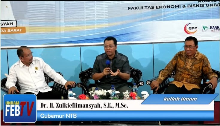 Gubernur Nusa Tenggara Barat Dr. H. Zulkieflimansyah, S.E., M.Sc menjadi pemateri pada Kuliah Umum di Fakultas Ekonomi dan Bisnis Universitas Mataram pada pukul 08.00 WITA. Gubernur NTB memberikan materi Kuliah mengenai Kebijakan Pengembangan Inovasi dan Teknologi dalam Mendukung Industrialisasi di NTB. “Technological Learning terdapat dinamika didalamnya ada proses bukan suatu hal yang dilakukan tanpa usaha. Pembangunan merupakan proses dari technological learning dimana pada tahap belajar adanya jenjang/stage dalam sistem inovasi yang ada di Indonesia dimana salah satu Provinsi NTB berani memproklamirkan BRIDA. Saya berharap teman-teman Unram bisa berkolaborasi dengan BRIDA. Hal lainya juga dimana adanya Digitalization harus tetap memperhatikan komoditas Tradisional NTB dan harus melalui proses industrialisasi dan Digitalisasi”. Ucap Bang Zul Sapaan Khas Gubernur NTB Kegiatan tersebut dibuka dengan Sambutan dari Wakil Rektor 4 Unram Yusron Saadi, ST. M.Sc. Phd. Dimana dikegiatan Kuliah umum dipimpin Dr. M Firmansyah Moderator. Pada Kesempatan tersebut dihadiri oleh Seluruh Dosen dan Civitas Akademika Universitas Mataram serta Pemerintah Provinsi Nusa Tenggara Barat. Demikian...(Biro Organisasi Official)